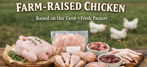 We offer whole and half beef, farm-raised chicken and pork, hand-cut individual cuts, and family bundles, giving our customers both freezer-filling options and everyday convenience.